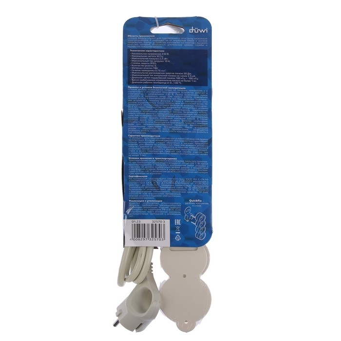Сетевой фильтр Duwi, 5 розеток 1.5 м, с з/к, с выкл., шторками, цвет слоновая кость