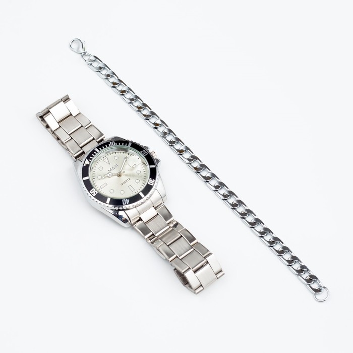 Мужской подарочный набор "Маратон" 2 в 1: наручные кварцевые часы, браслет