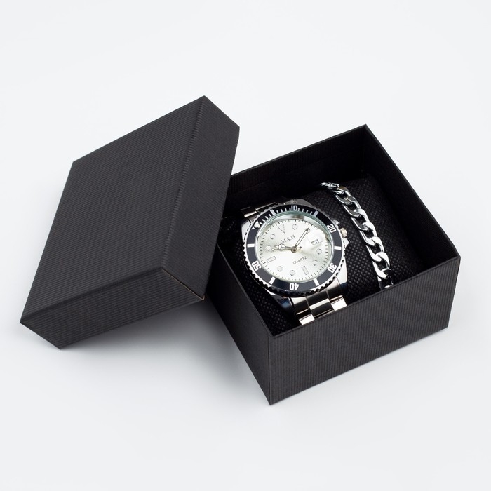 Мужской подарочный набор 2 в 1: наручные часы, браслет