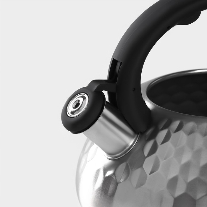 Чайник со свистком из нержавеющей стали Magistro Glow, 3 л, индукция, ручка soft-touch, цвет серебряный