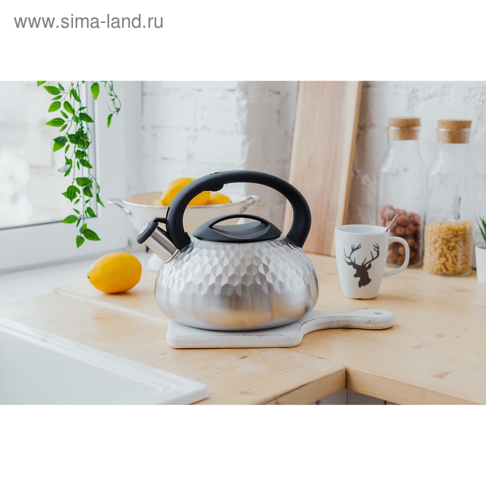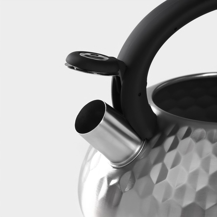 Чайник со свистком из нержавеющей стали Доляна «Чёрная ночь», 2 л, индукция, цвет хромированный