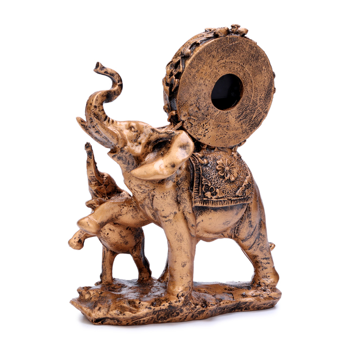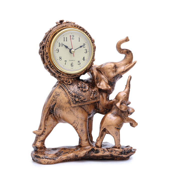 Часы настольные интерьерные "Каминные. Слониха и слонёнок", 17 х 21 см, циферблат d-5.5 см