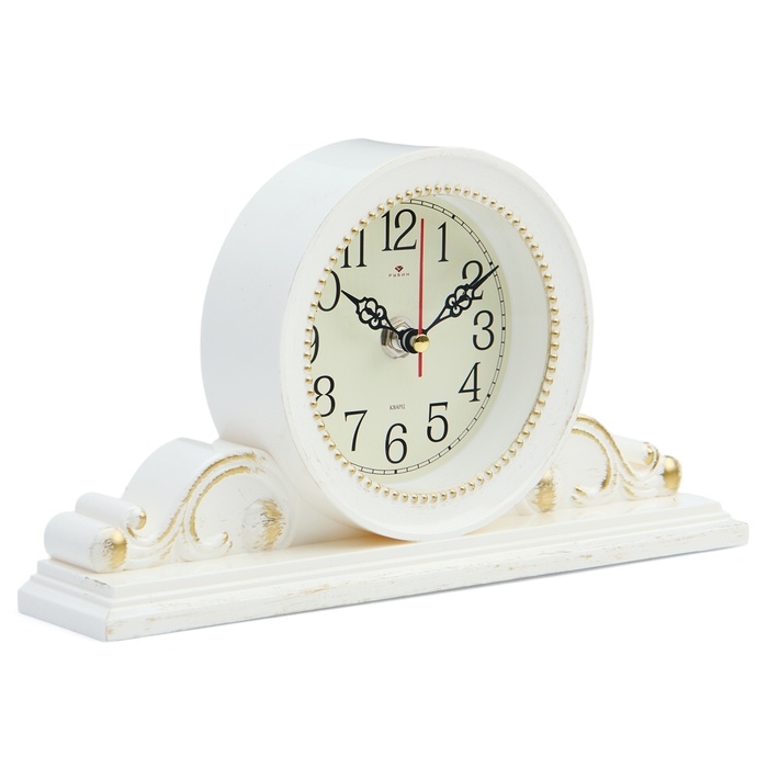 Часы настольные, интерьерные "Милица", бесшумные, d-9.5 см, корпус белый с золотом