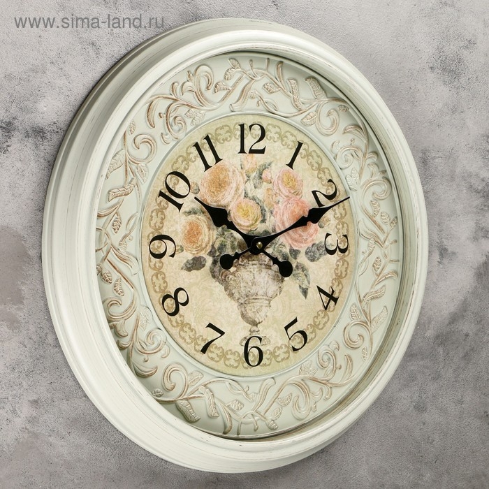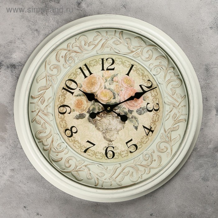 Часы настенные, интерьерные, большие "Розы", бесшумные, d-50 см