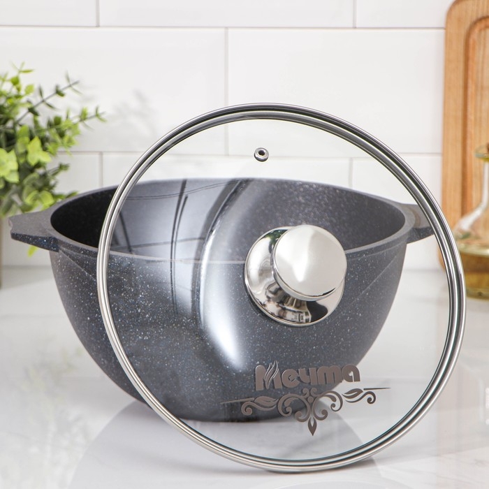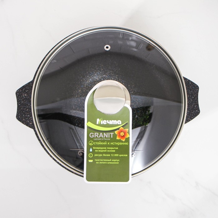 Казан «Гранит Stаr», 4 л, стеклянная крышка, литые ручки, антипригарное покрытие, тёмно-синий