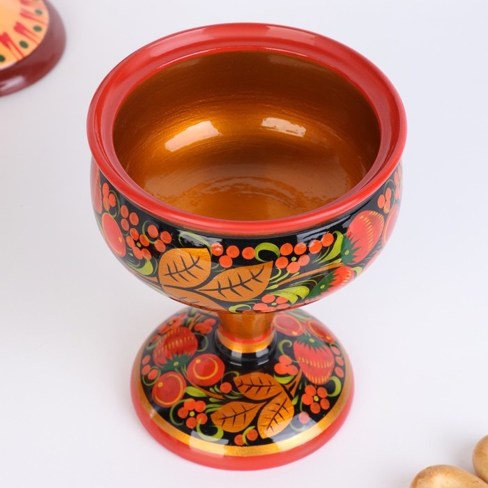 Традиционные элементы Хохломы — ягоды рябины и земляники, цветы и листья, птицы, рыбы и звери.