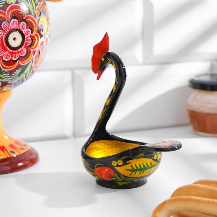 Конфетница «Лебедь»,14х11х7 см, хохлома