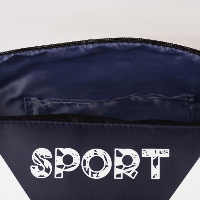 Сумка спортивная на молнии, боковой карман/сетка, регулируемый ремень, маленький размер, цвет тёмно-синий