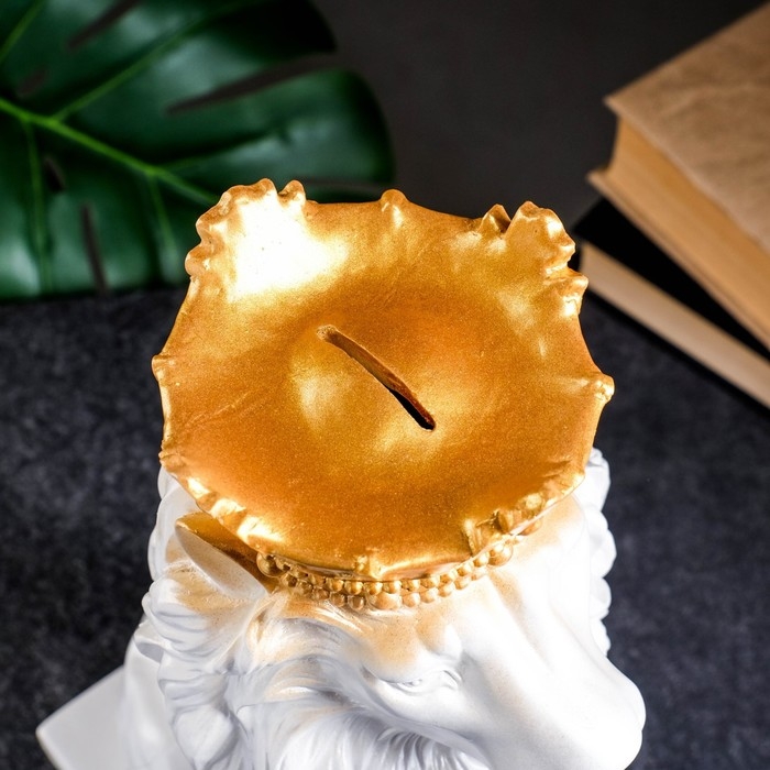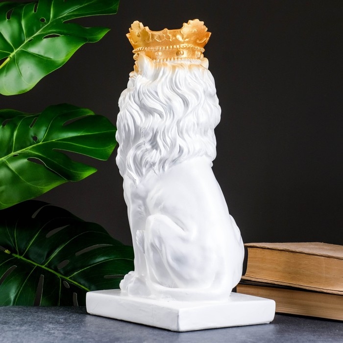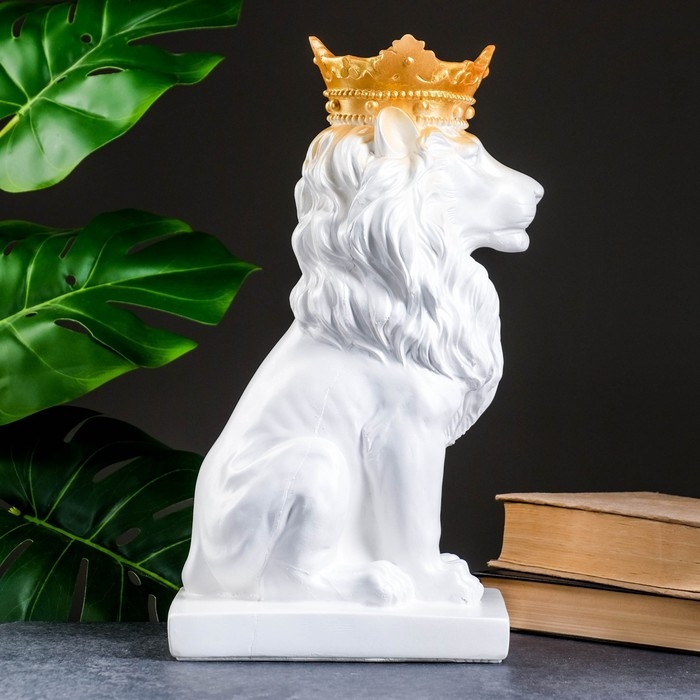 Копилка "Лев с короной" белый с золотом, 35см