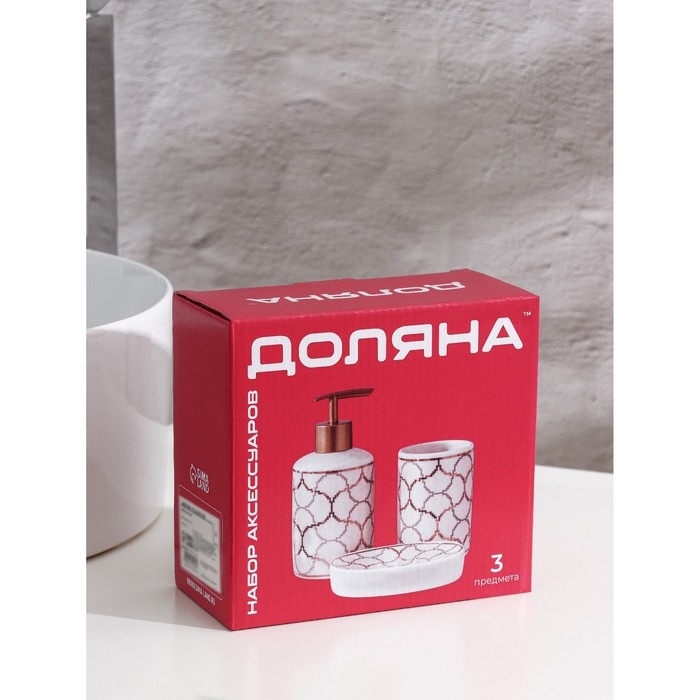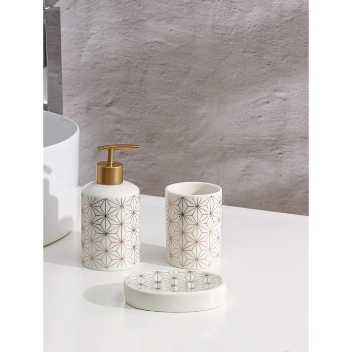 Набор аксессуаров для ванной комнаты Доляна «Андромеда», 3 предмета (дозатор 250 мл, мыльница, стакан), цвет белый