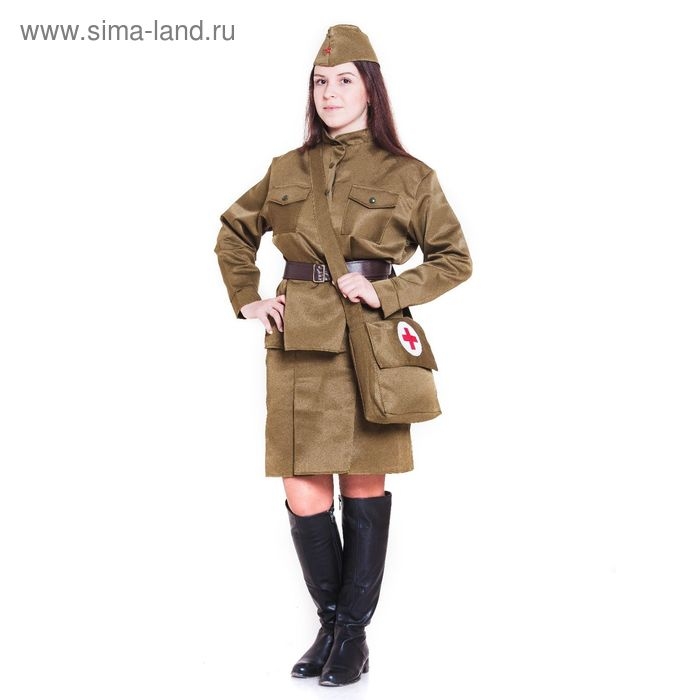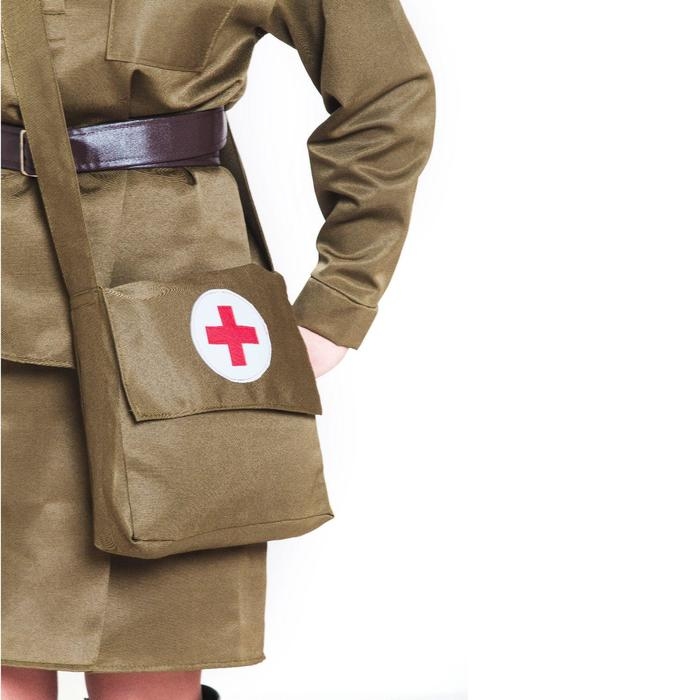 Костюм военного «Санитарочка», пилотка, гимнастёрка, ремень, юбка, сумка, р. 40-42 превратит хрупкую девушку в отважную боевую подругу, спасающую жизни солдат! Дизайн гимнастёрки, перетянутой на талии ремнём, максимально приближен к форме далёких 40-х, чтобы вы могли с головой окунуться в атмосферу боевых дней.