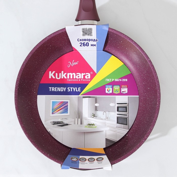 Посуда линии Trendy style разработана в соответствии с последними модными тенденциям. Сковорода Kukmara сделана из литого алюминия, с внутренней и внешней стороны — антипригарное покрытие увеличенной прочности, изготовлено на водной основе по немецким технологиям.