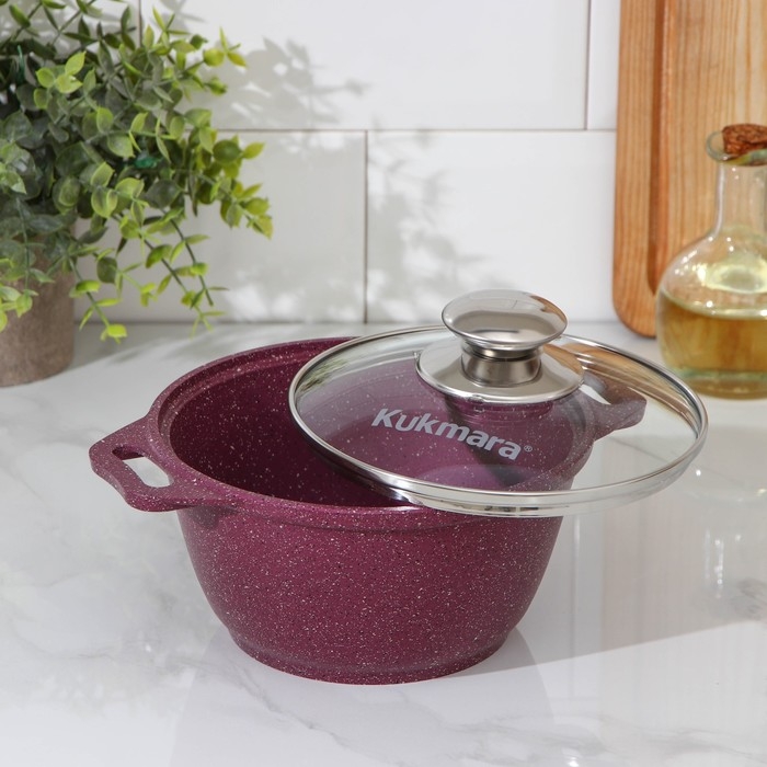 Посуда линии Trendy style разработана в соответствии с последними модными тенденциям. Кастрюля Kukmara сделана из литого алюминия, с внутренней и внешней стороны — антипригарное покрытие увеличенной прочности, изготовлено на водной основе по немецким технологиям.