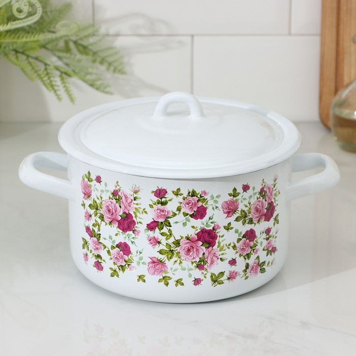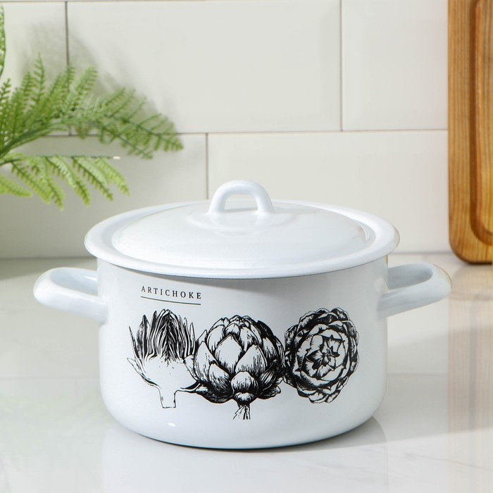 Кастрюля эмалированная цилиндрическая, 2,9 л, рисунок МИКС
