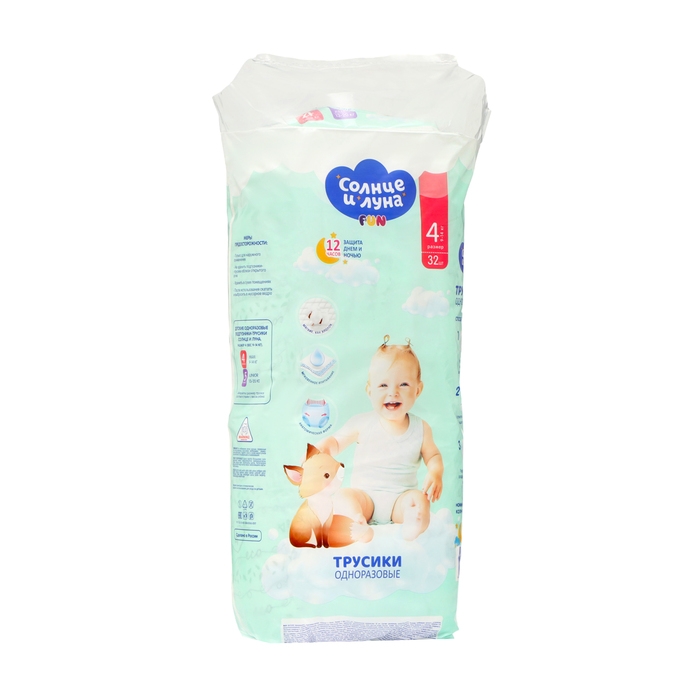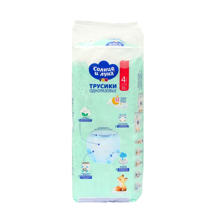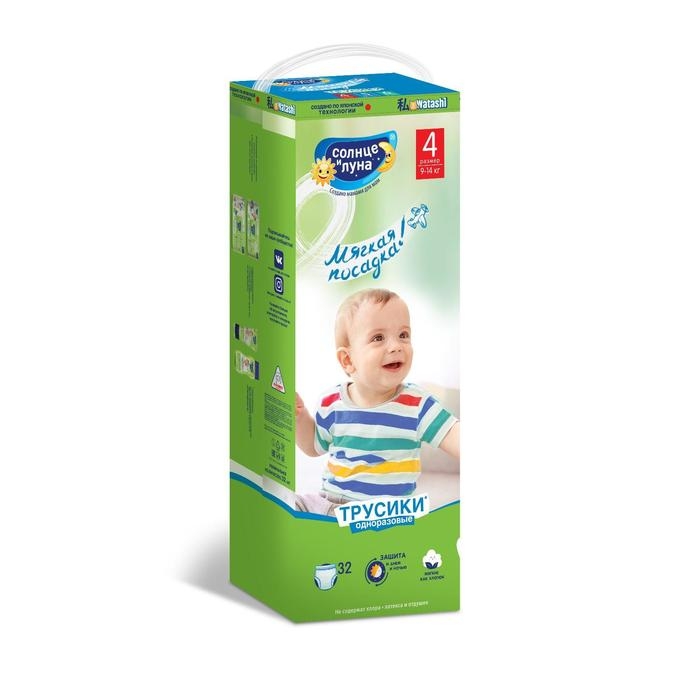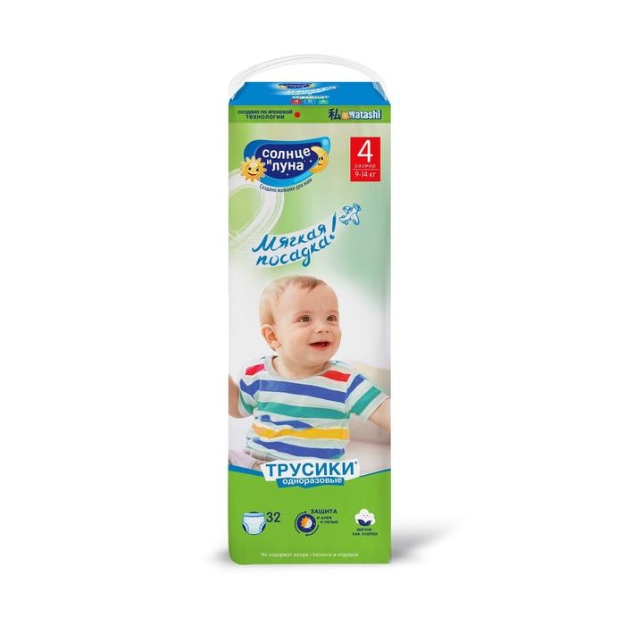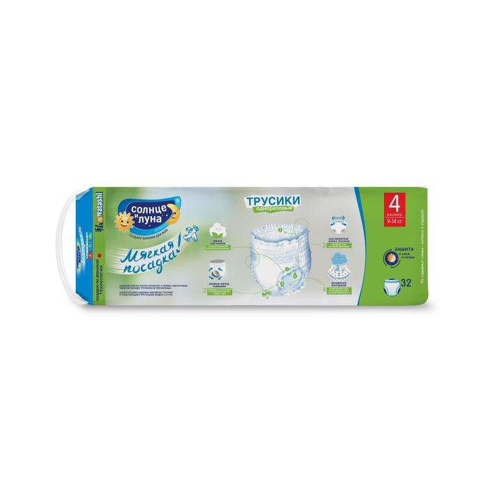 Подгузники-трусики "Солнце и луна" 4/L, мягкая забота, 9-14 кг, 32 шт