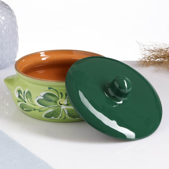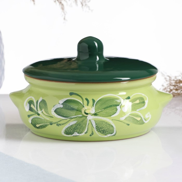 Горшок керамический для запекания "Борисовский" 0,7л / 15х9см, зеленый
