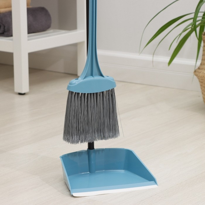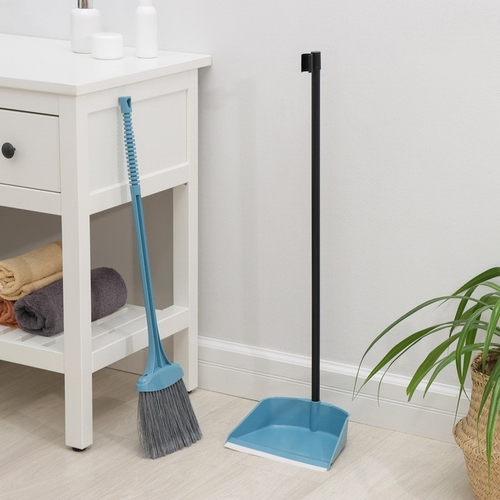 Веник с совком «Ленивка», 19,5×25×90 см, цвет голубой