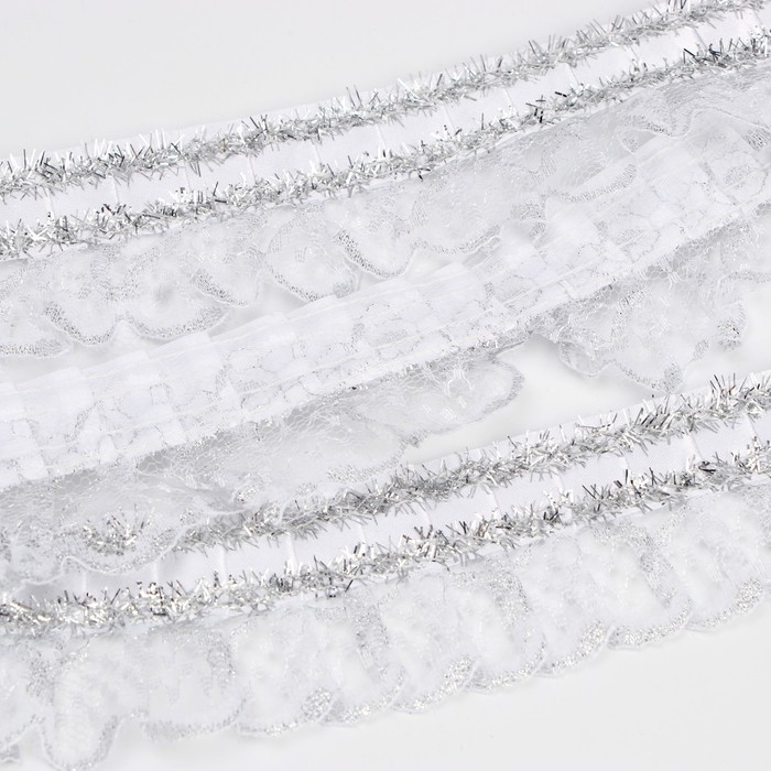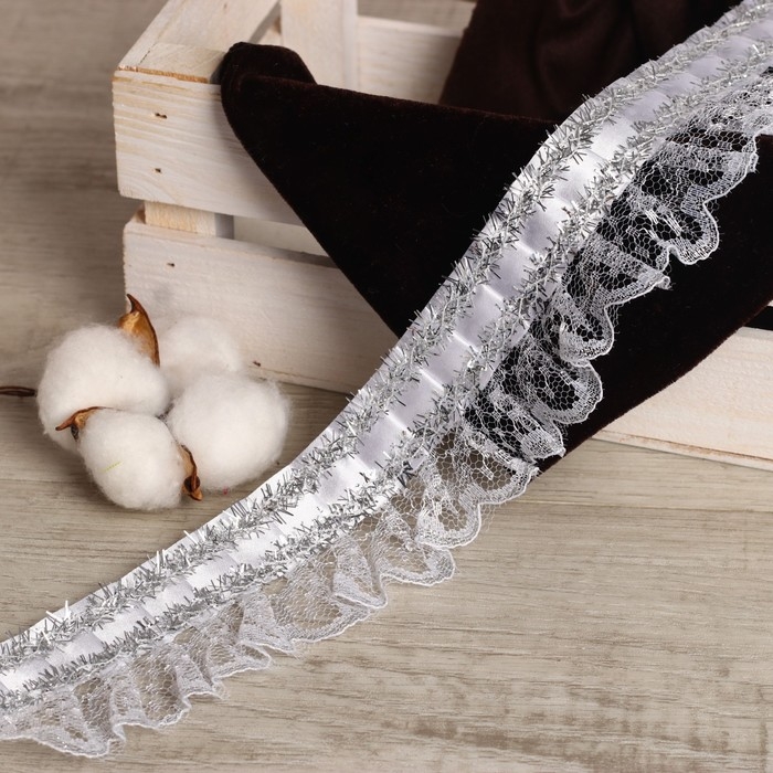 Тесьма, гипюр на атласе с фольгой, 5 см, в рулоне 25 м