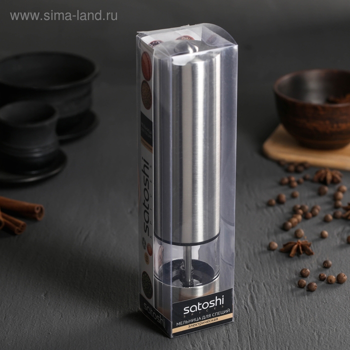 Мельница электрическая, для специй, 22 см, нержавеющая сталь, акрил