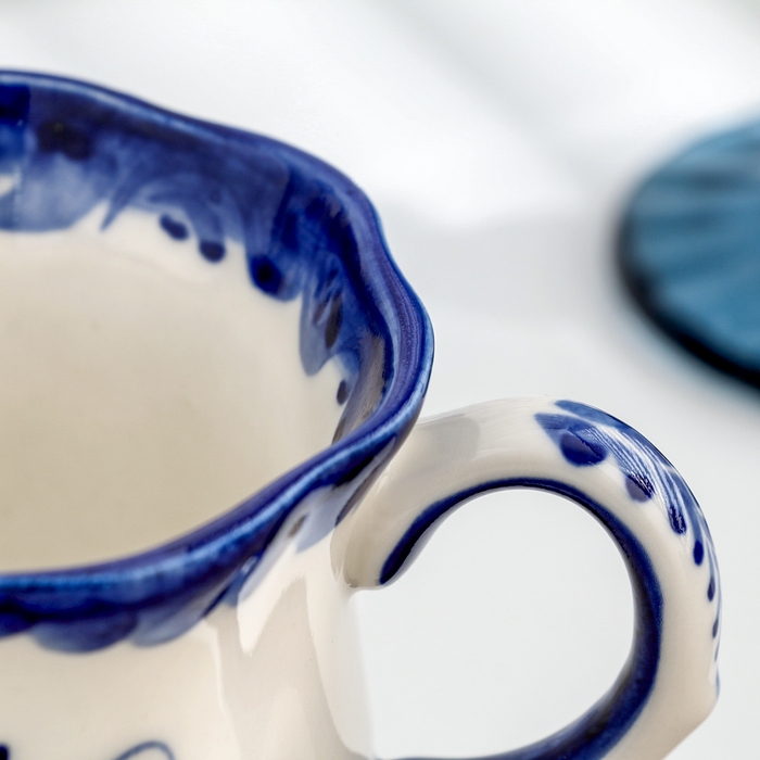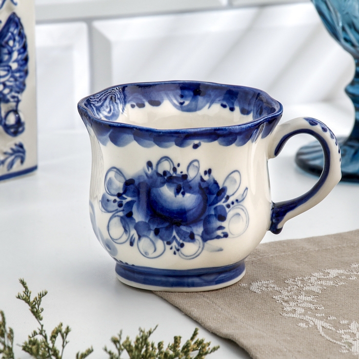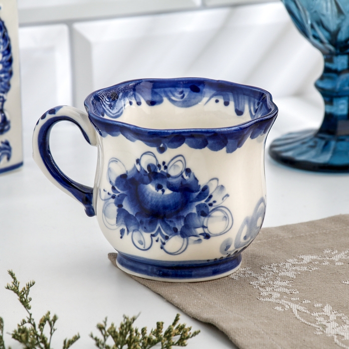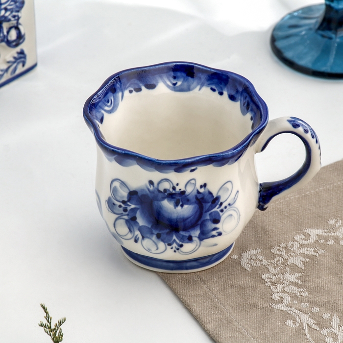 Чашка "Ромашка", гжель, фарфор, 200 мл, 9 см
