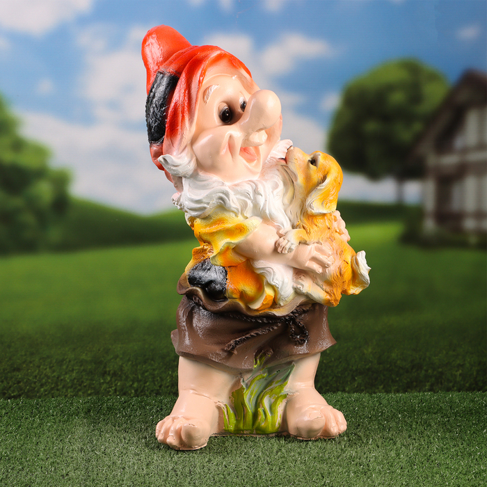 Садовая фигура "Гном с собачкой" 23х22х46см