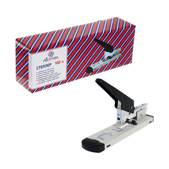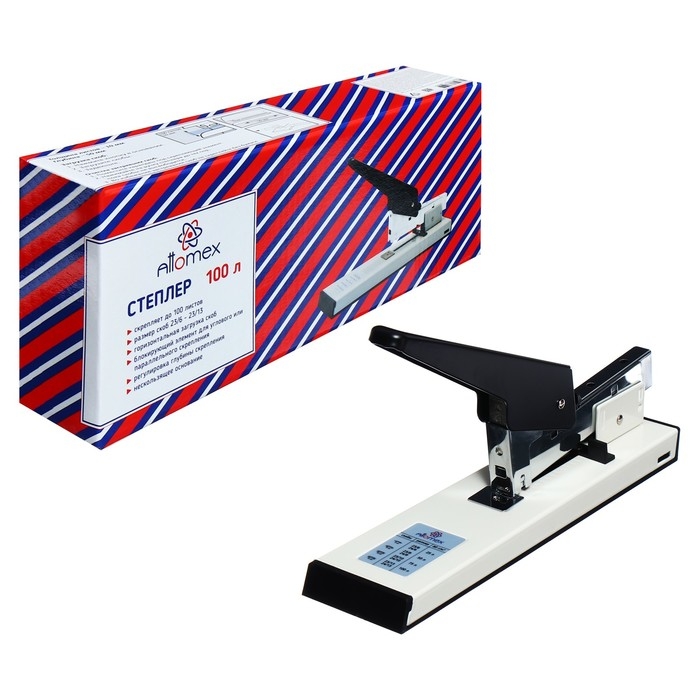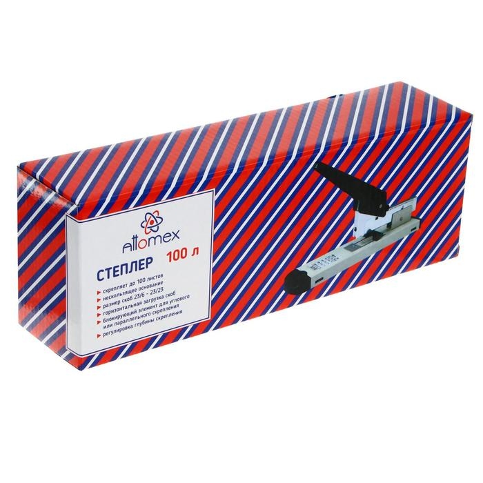 Степлер большой мощности "Attomex" 23/6-23/13 (до 100 листов, глубина скрепления 50 мм) металлический, в картонной коробке, серый.