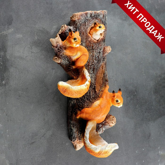 Подвесной декор "Навесные Белки поилки на дереве" 33х17х60 см