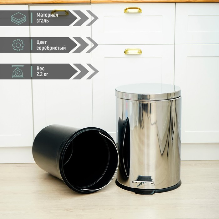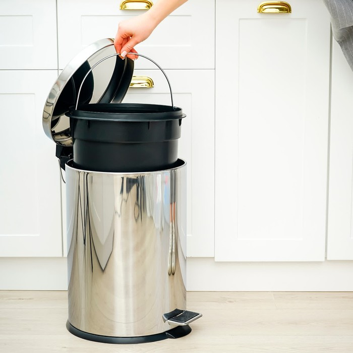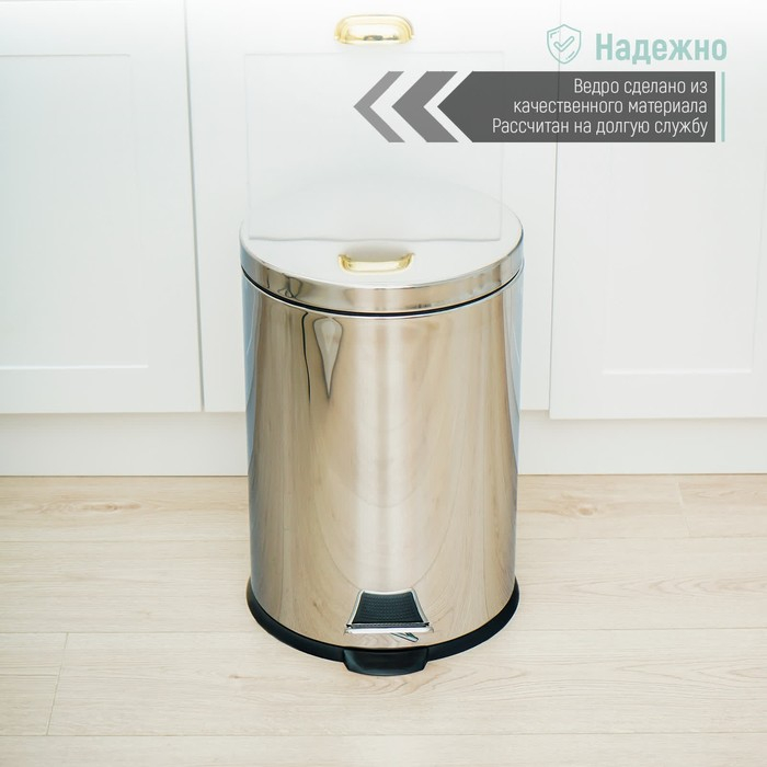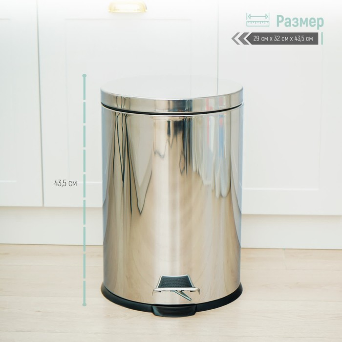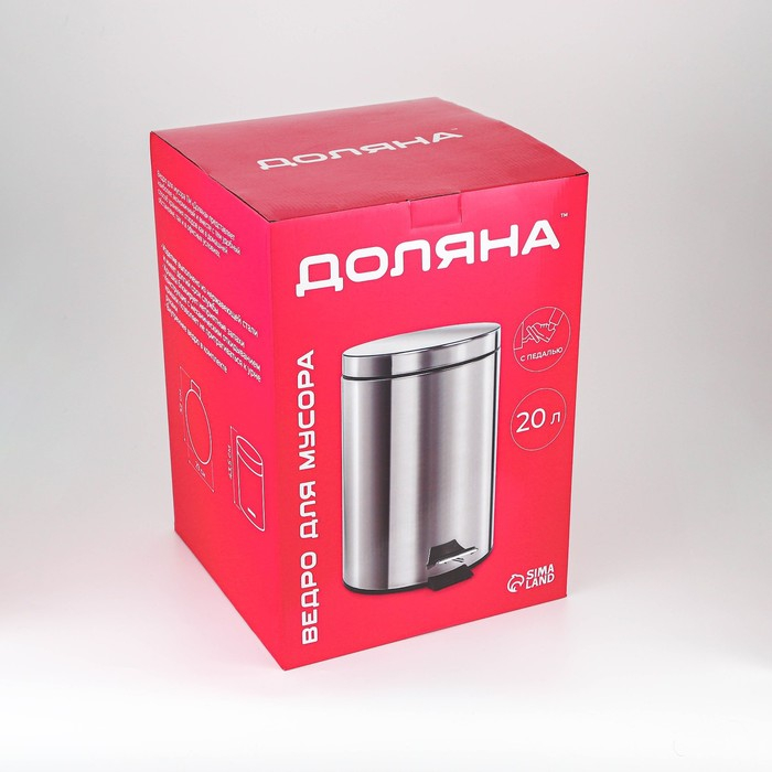Ведро мусорное с педалью Доляна, 20 л, нержавеющая сталь, цвет хромированный