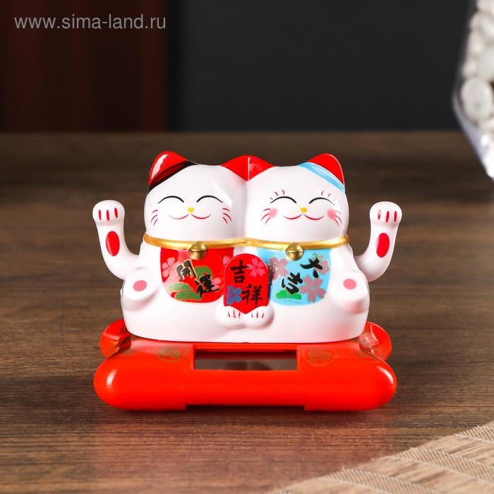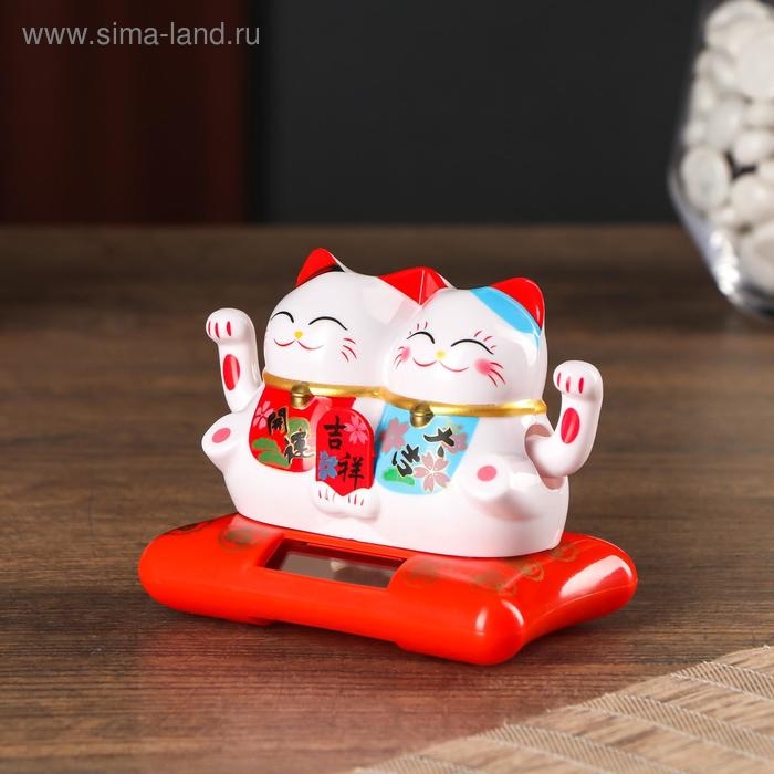 Маятник пластик от солнечной батареи "Парочка котов Манэки-нэко с пожеланием" 6,5х8,5х5,5 см 50183
