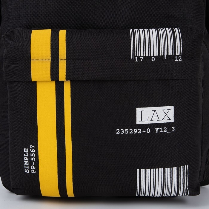 Рюкзак школьный молодёжный «Штрихкод», 33х13х37 см, отдел на молнии, наружный карман, цвет чёрный