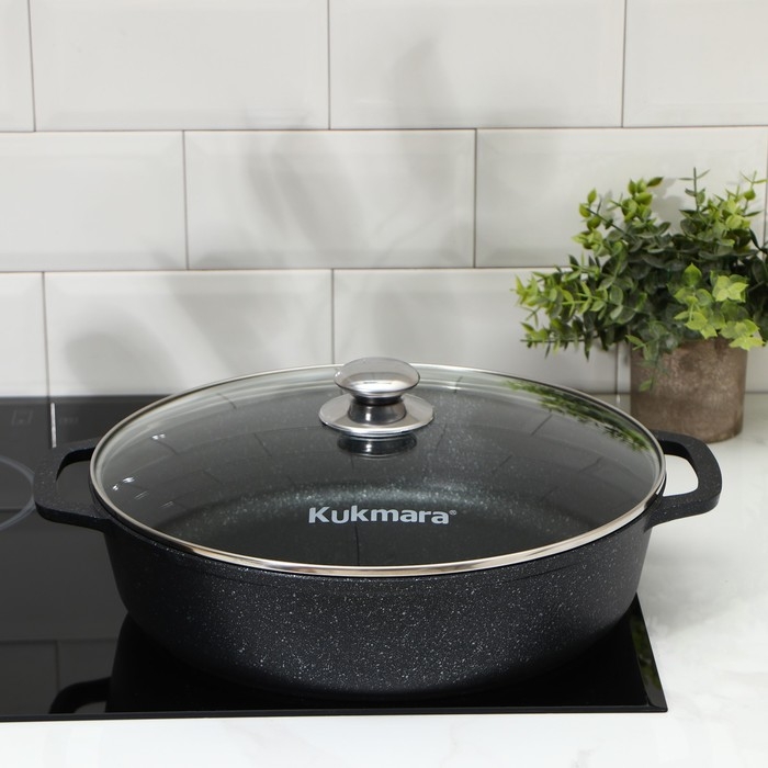 Сотейник, d=32 см, стеклянная крышка, литые ручки, антипригарное покрытие, цвет тёмный мрамор