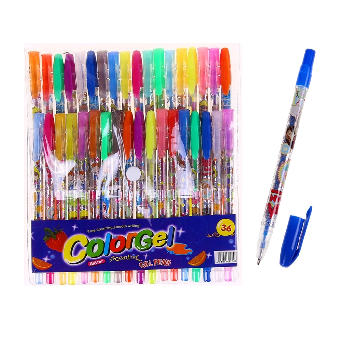 Набор гелевых ручек с блёстками, 36 цветов, корпус с рисунком, в блистере, на кнопке