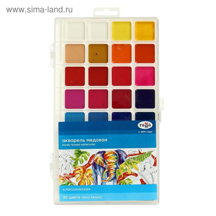 Акварель 32 цвета "Гамма" "Классическая", медовая, без кисти, пластик