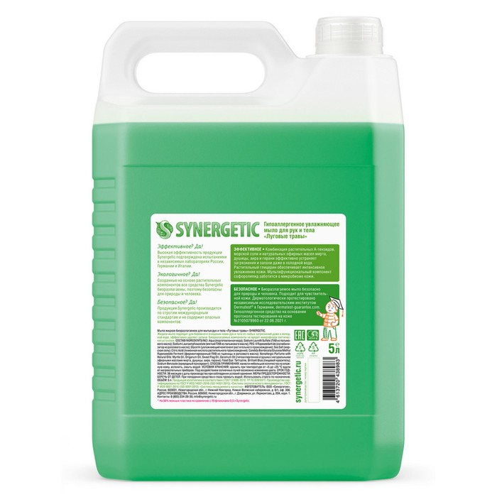 Жидкое мыло Synergetic "Луговые травы", биоразлагаемое, 5 л