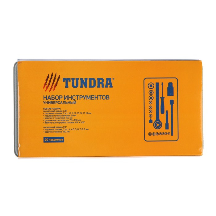 Набор инструментов в кейсе ТУНДРА, универсальный, 1/4" и 3/8", 20 предметов