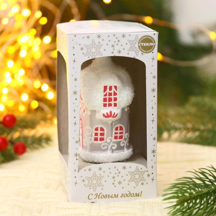 Ёлочная игрушка "Домик" h-9 см, бело-розовый