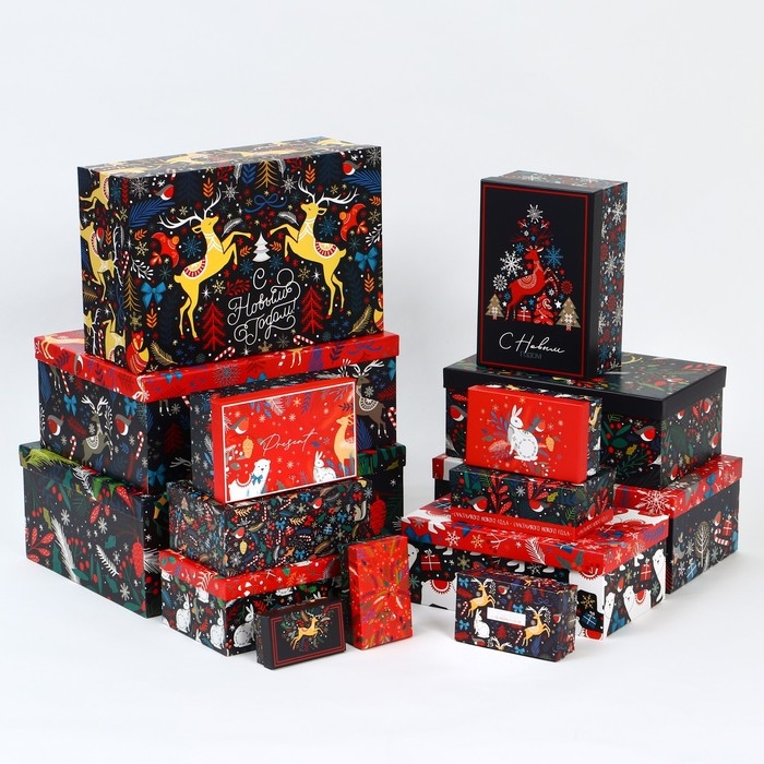 Набор коробок подарочных 15 в 1 «Европейский», 12 х 7 х 4 см - 46,6 х 35,2 х 17.5 см, Новый год