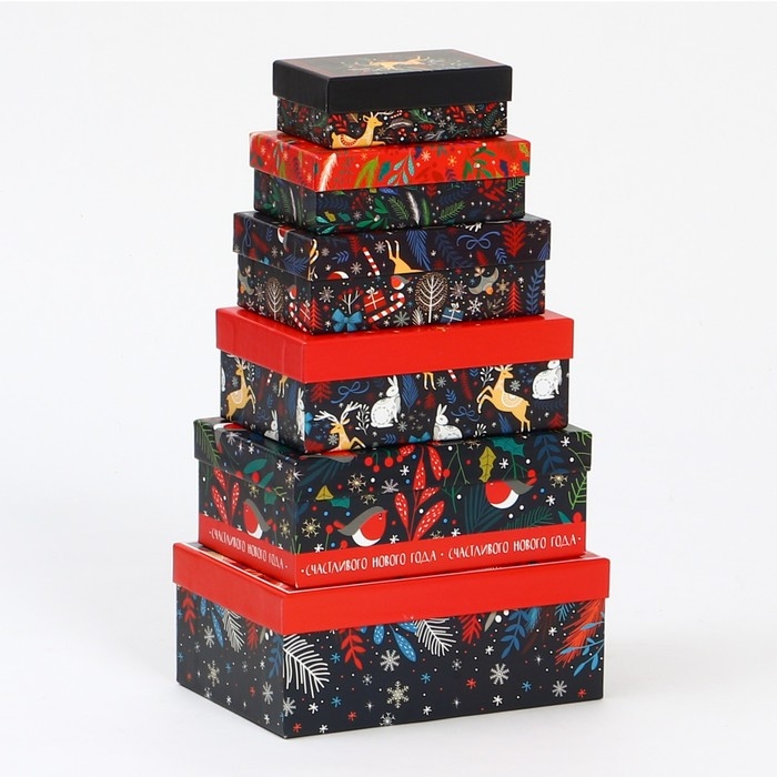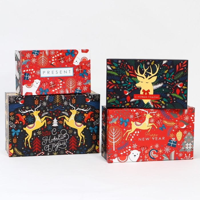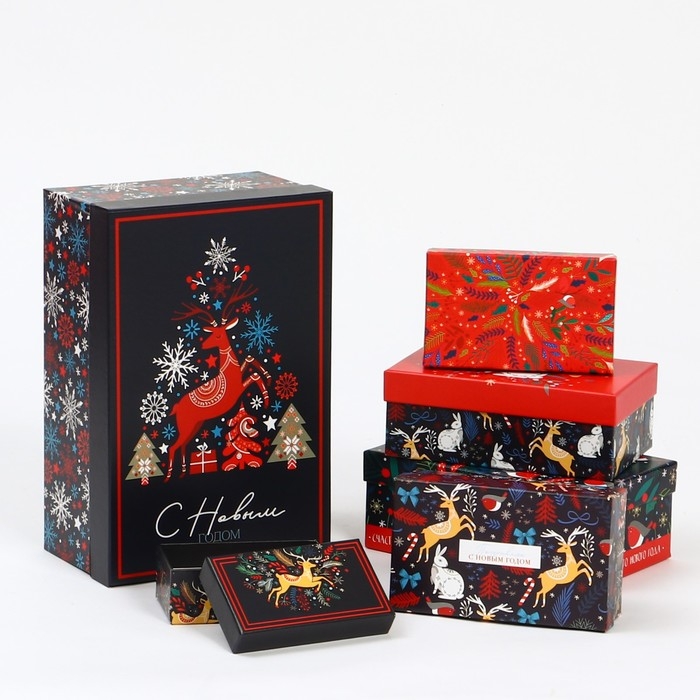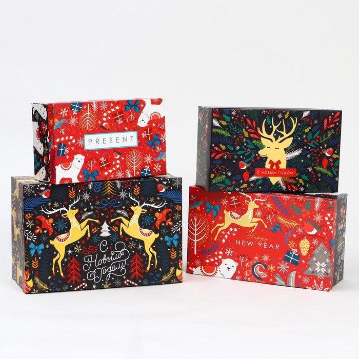 Набор подарочных коробок 5 в 1 «Скандинавские узоры», 13 х 14‒19.5 х 22 см, Новый год