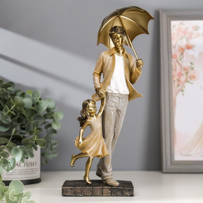 Сувенир полистоун "Папа с дочкой на прогулке под зонтом" бежевый 28х11х8 см