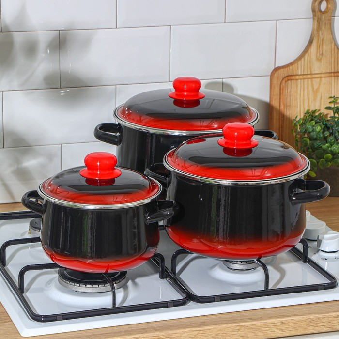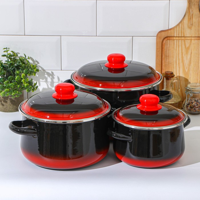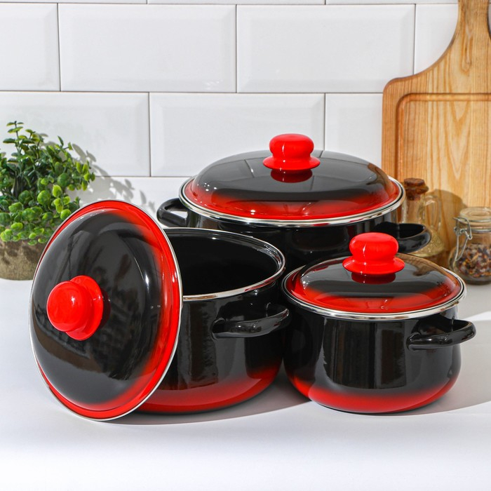 Набор кастрюль «Кармен», 3 предмета: 2 л, 4 л, 5,5 л, индукция, цвет чёрно-красный