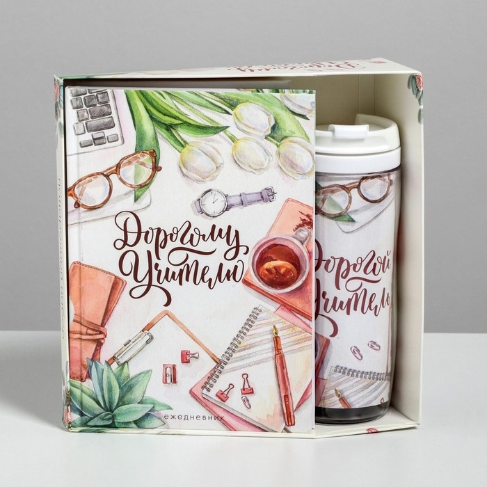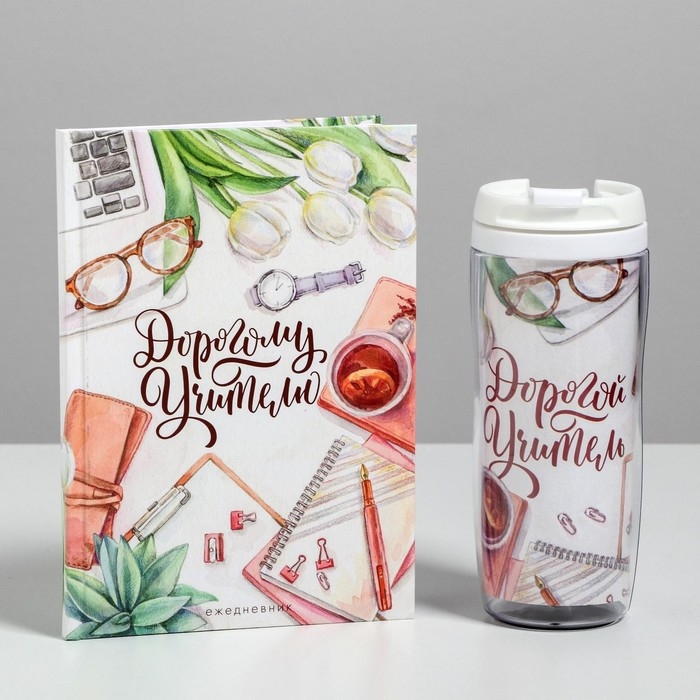 Подарочный набор «Дорогому учителю»: ежедневник А5, 80 листов, термостакан 350 мл