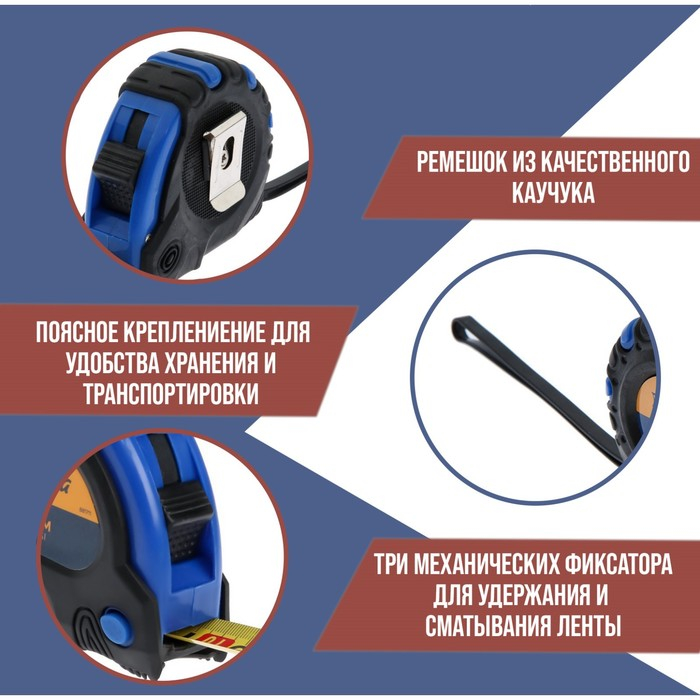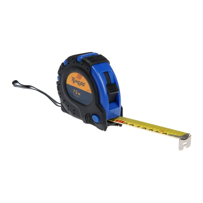 Рулетка ТУНДРА, обрезиненный корпус, 3 фиксатора, 7.5 м х 25 мм