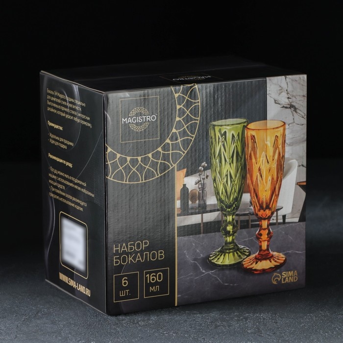 Набор бокалов из стекла для шампанского Magistro «Круиз», 160 мл, 7×20 см, 6 шт, цвет розовый
