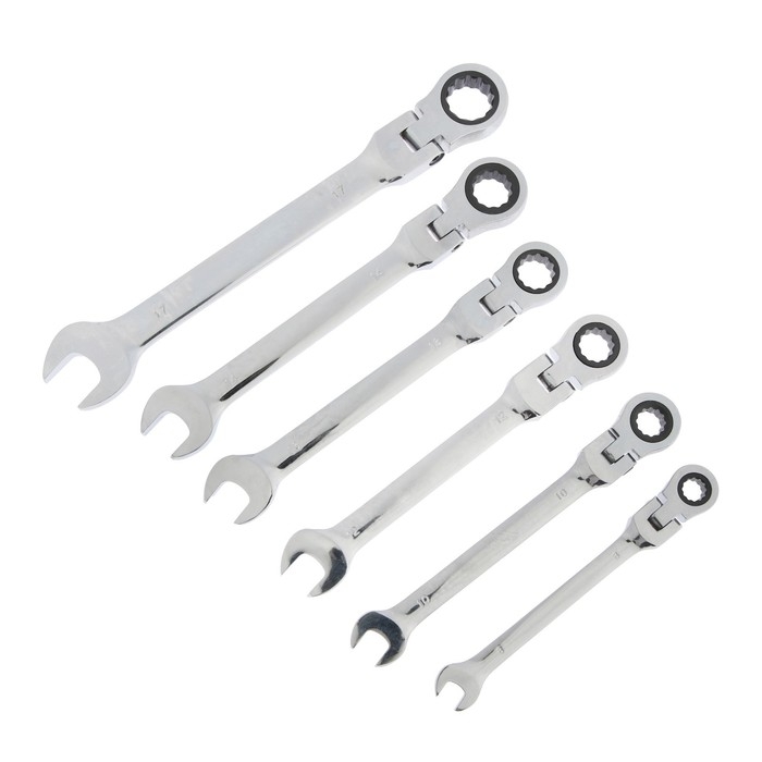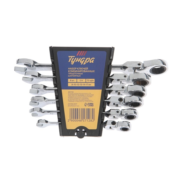 Набор ключей комбинированных трещоточных шарнирных ТУНДРА, CrV, 72 зуба, 8 - 17 мм, 6 шт.
