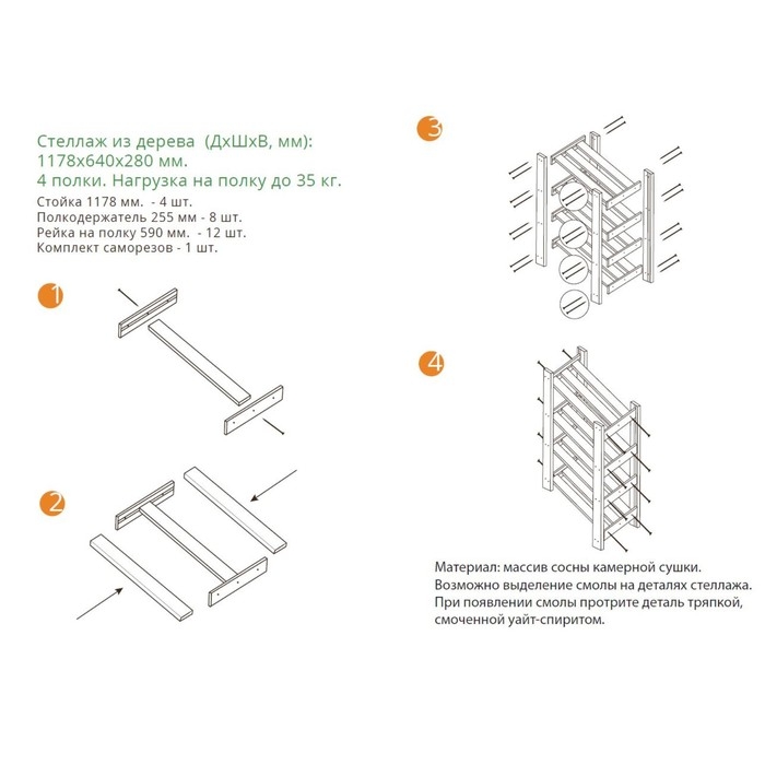 Стеллаж деревянный "Альфа 117" 117,8х64х28 см, 4 полки