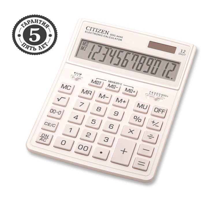 Калькулятор настольный Citizen "SDC-444XRWHE", 12-разрядный, 155 х 204 х 33 мм, двойное питание, белый