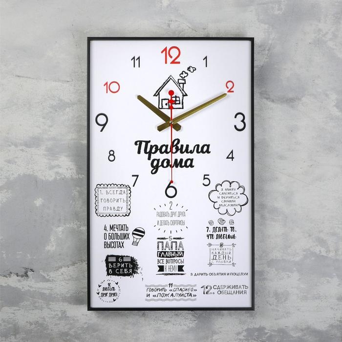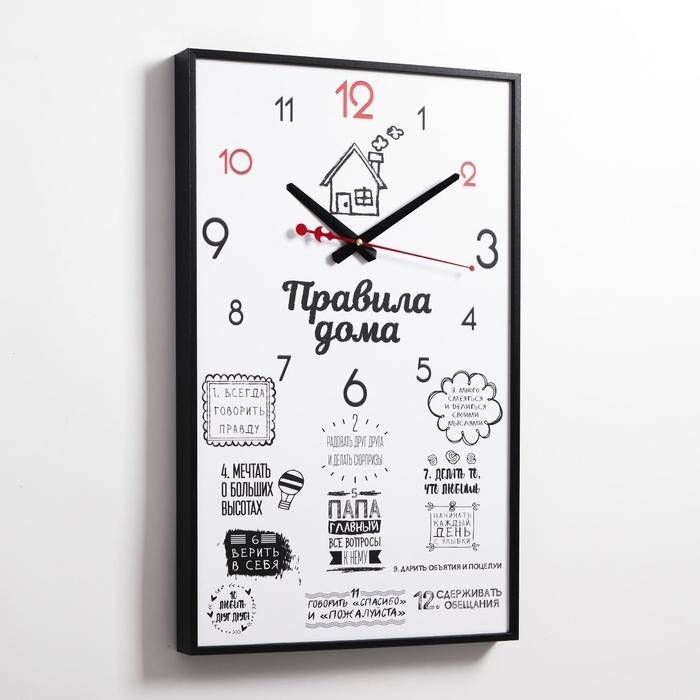 Часы-картина настенные, интерьерные "Правила дома", плавный ход, 57 х 35 х 4 см
