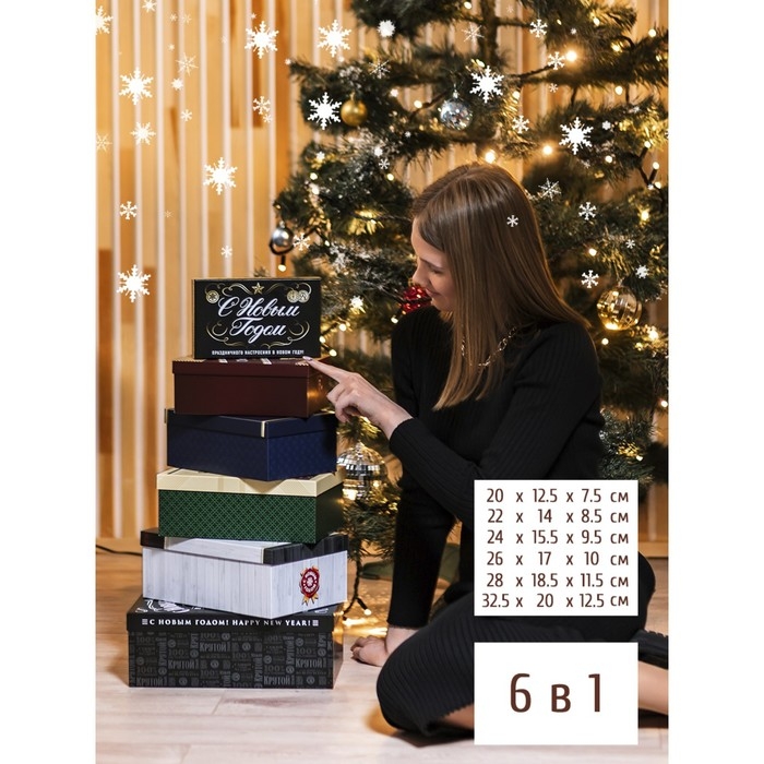 Набор подарочных коробок 6 в 1 «Алкогольный», 20 х 12,5 х 7,5 - 32,5 х 20 х 12,5 см , Новый год