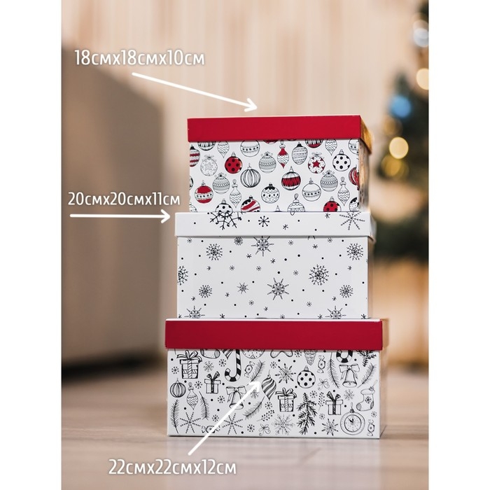 Набор подарочных коробок 3 в 1 «С Новым годом», 18 х 18 х 10‒22 х 22 х 12 см, Новый год