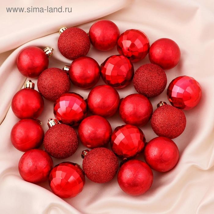 Набор шаров пластик d-4 см, 24 шт "Диско микс" красный